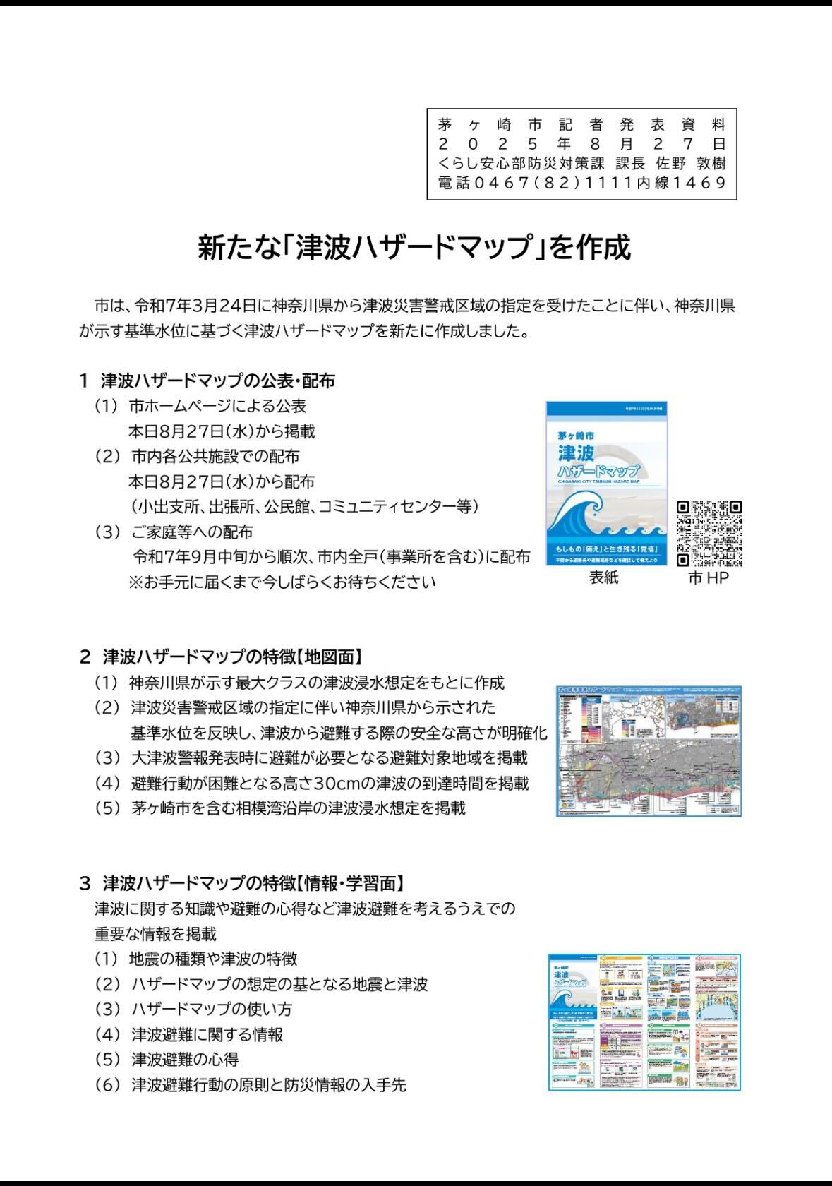 1.津波ハザードマップを作成し、令和7年9月に全戸配布予定。