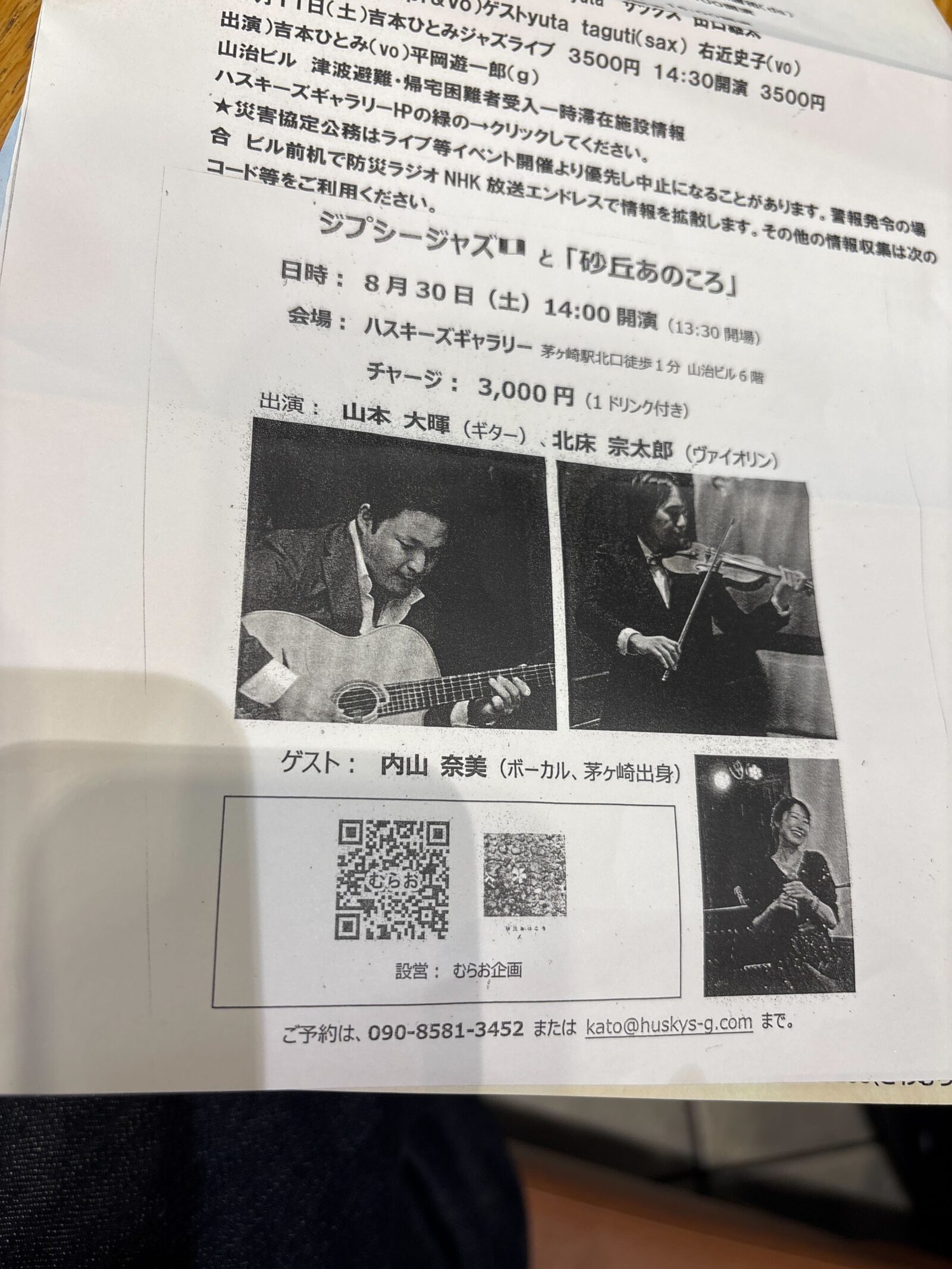 今日はハスキーズギャラリーで開催された「ジプシージャズと砂丘あのころ」に参加しました。