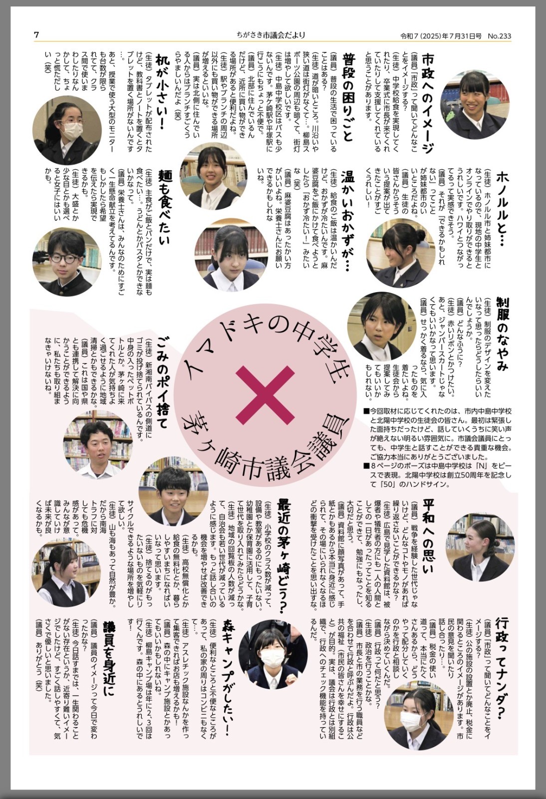 広報広聴委員として最後に関わったこの紙面で出会った中学生の声は、