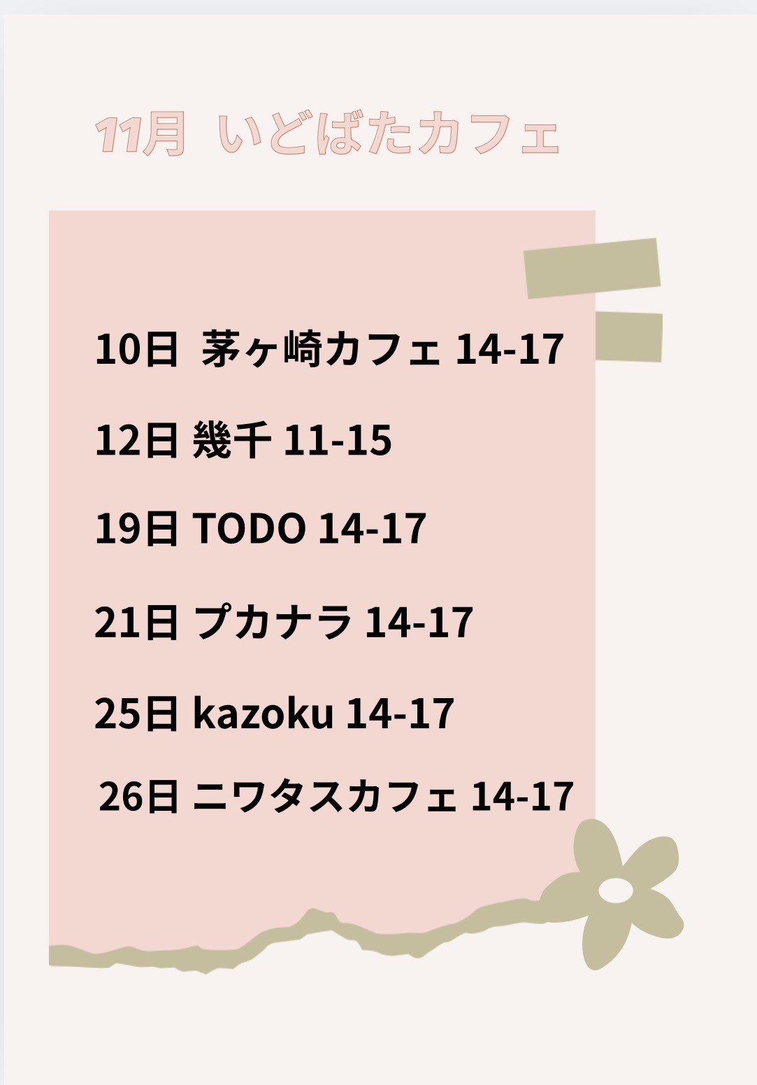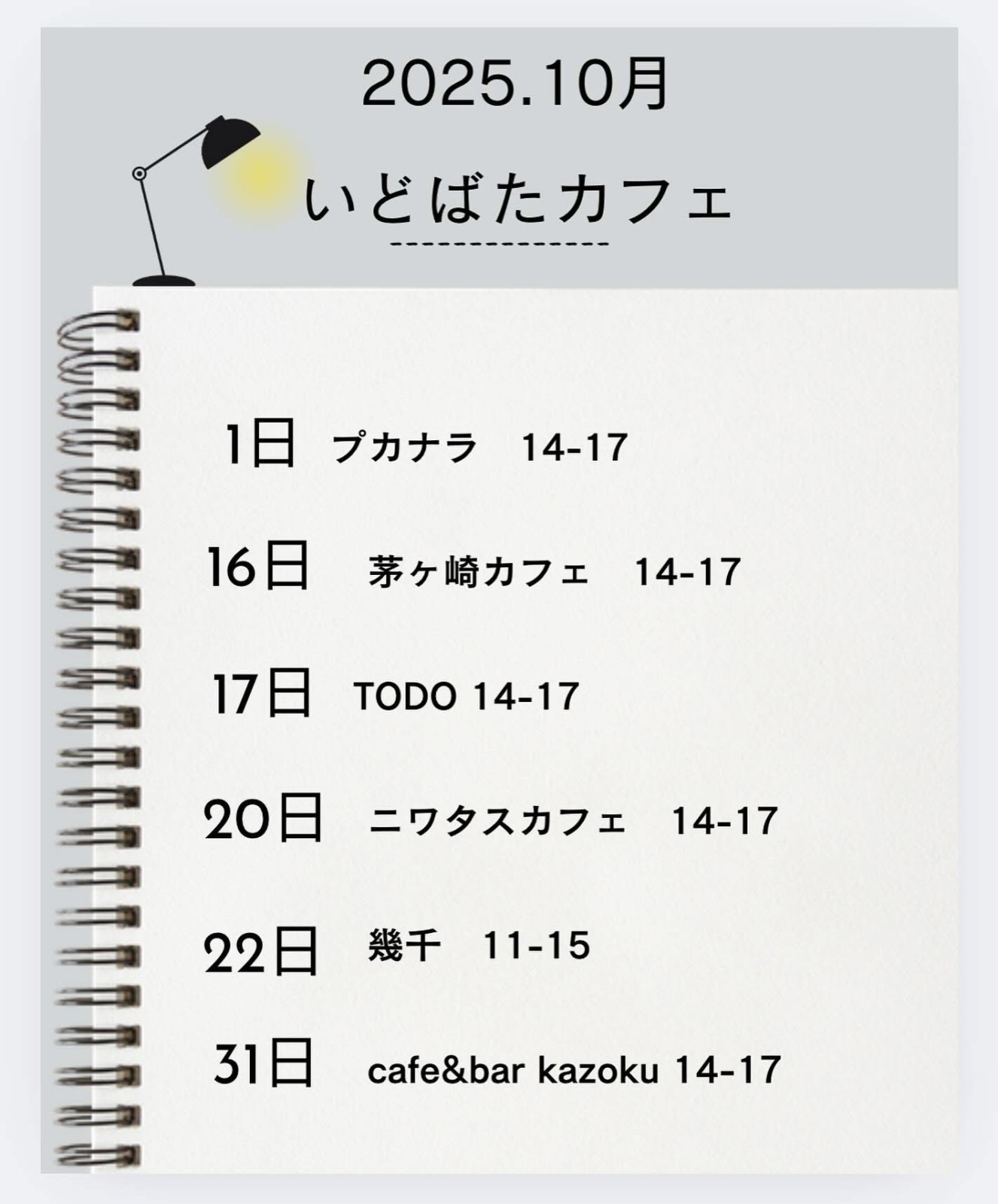 いどばたカフェの開催スケジュールはこちらでご確認いただけます。