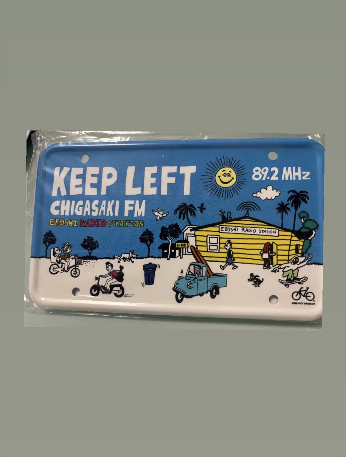 茅ヶ崎FMでは2周年記念グッズが販売中で、「見るだけ…」のつもりが、気づけば巾着と“KEEP LEFT”プレートを購入。